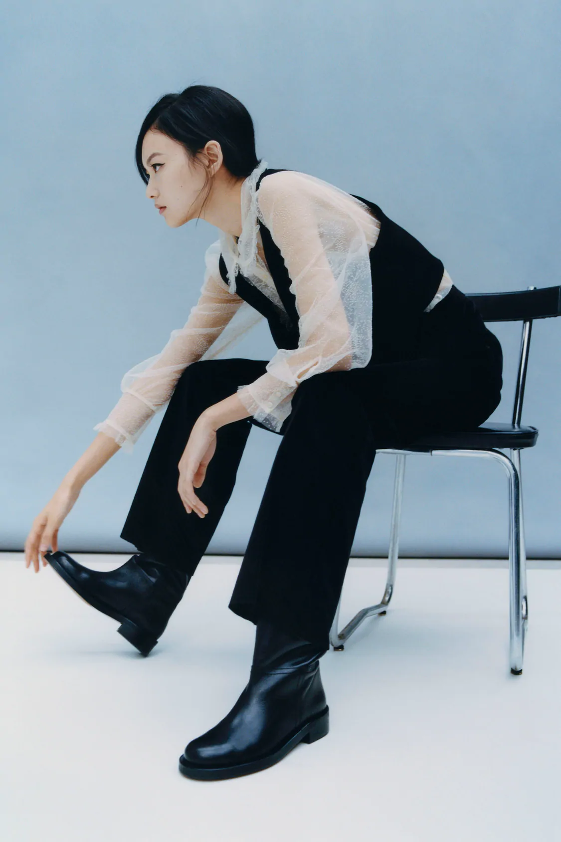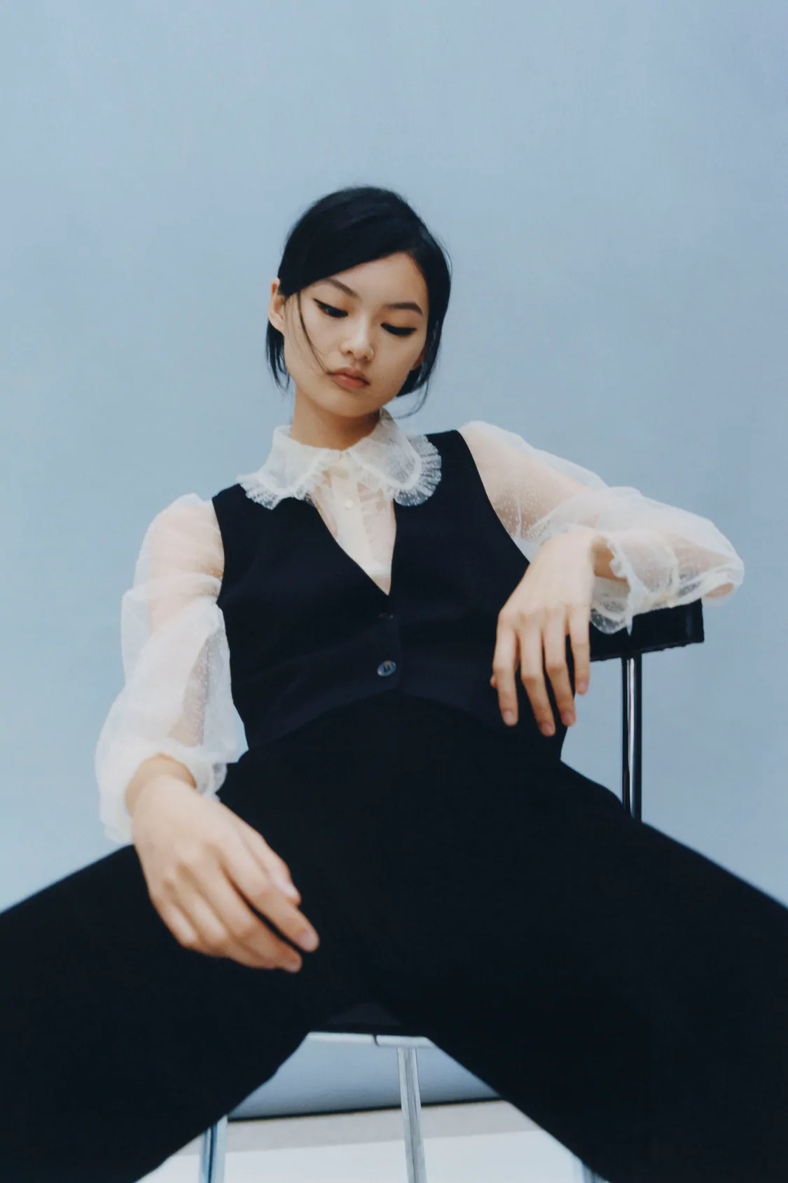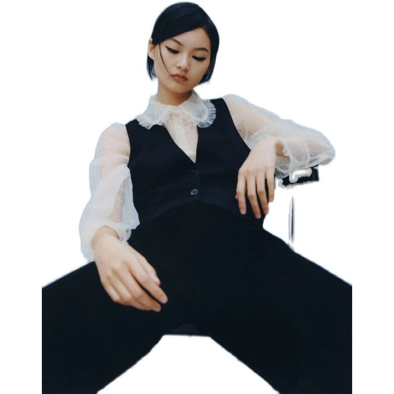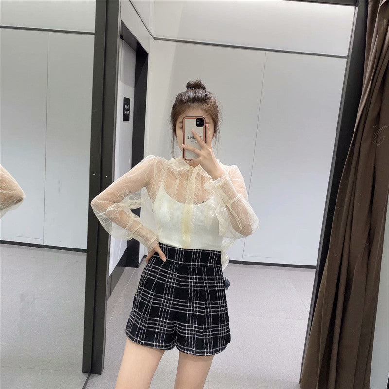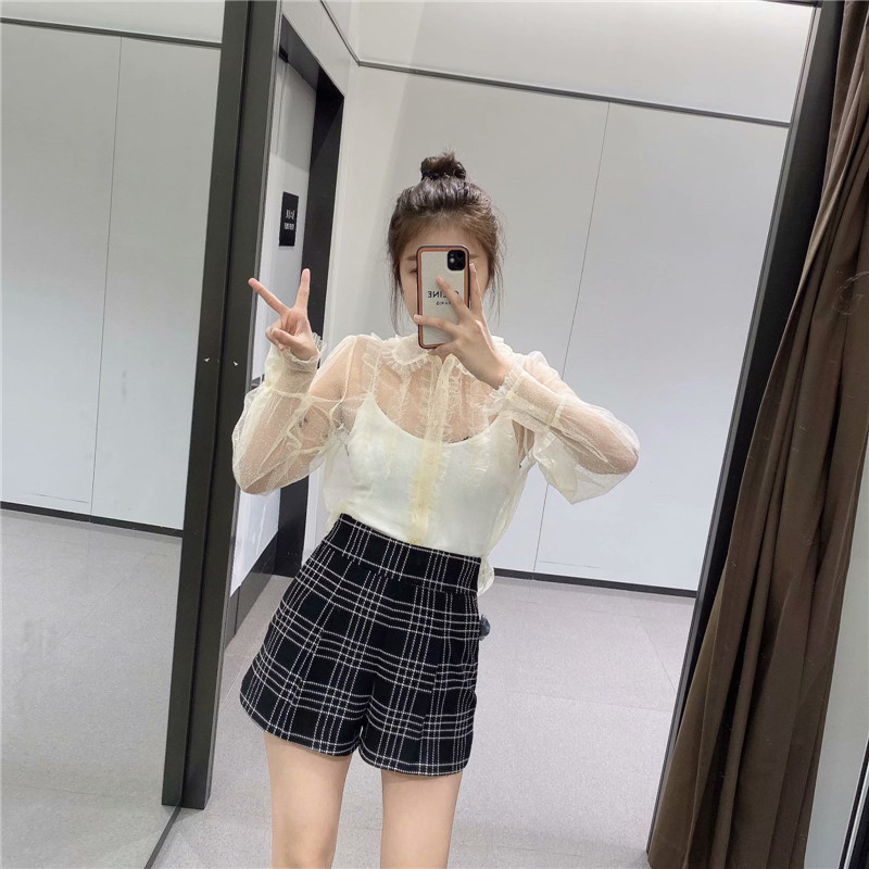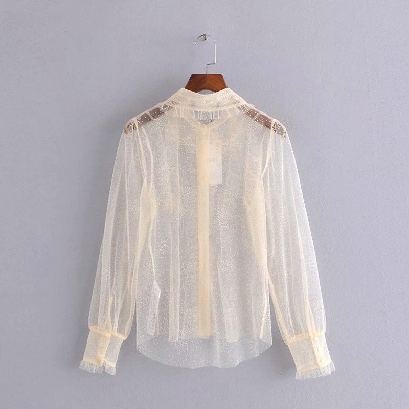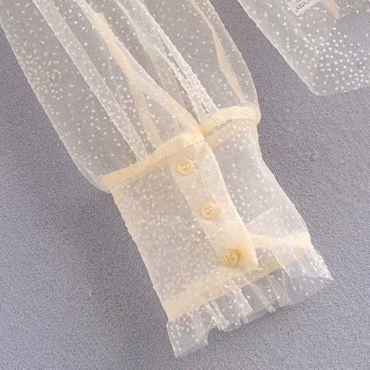 Autumn And Winter Women''s New Lotus Leaf Perspective Wave Point Bottomed Sweet Shirt