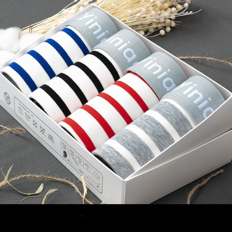 Boxes Of 4 Men's Cotton Striped Printed Boxer Boxers Full Cotton Explosion Style