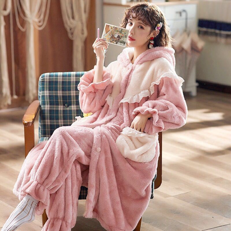 Cute Nightgown Plus Fleece Nightdress Flannel Set