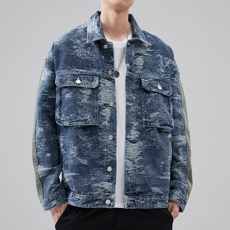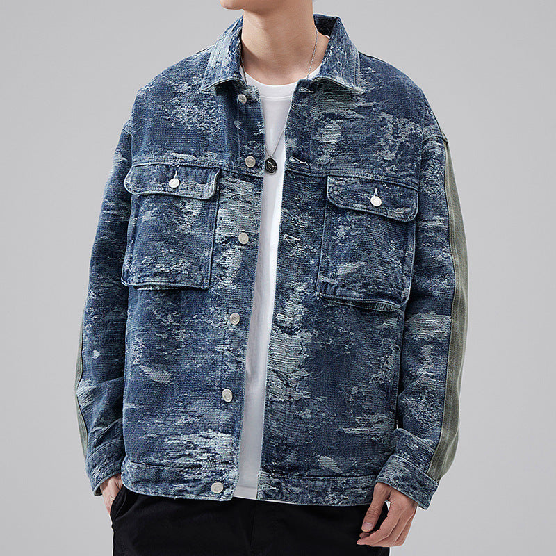 High Street American Classic Retro Patterned Denim Casual Jacket Shirt
