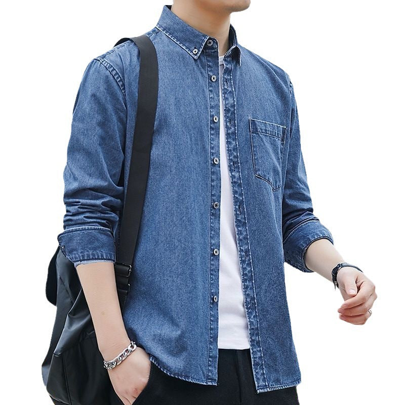 Men's Cotton Denim Thick Coat Long Sleeve Shirt Loose Casual Shirt