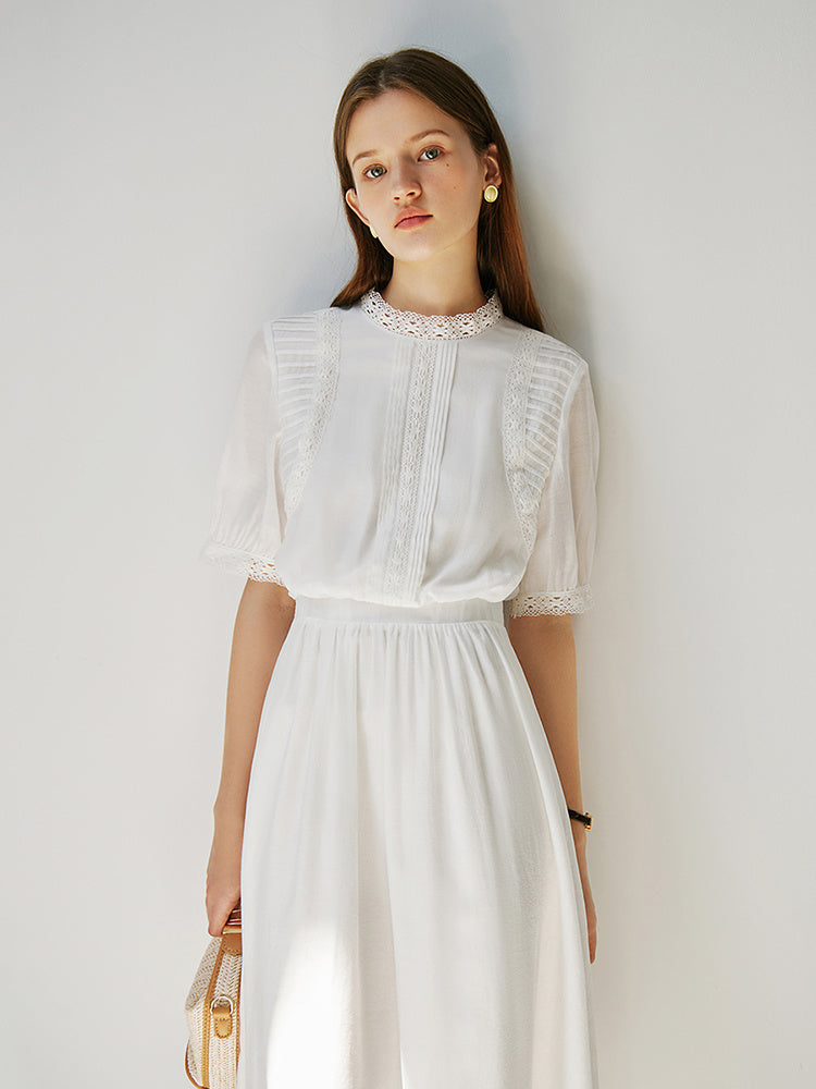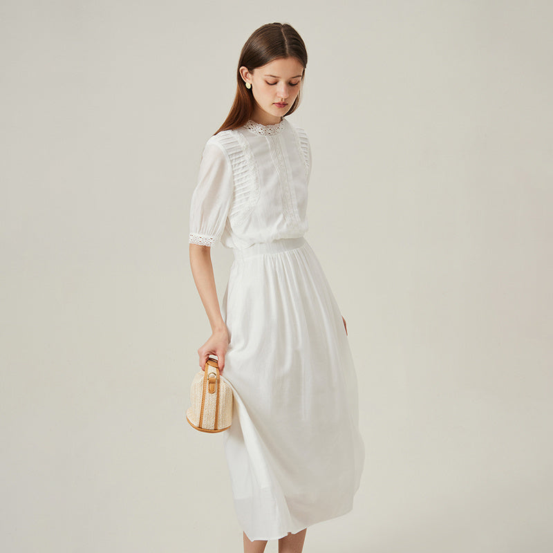 Vanslan Mint French Court Style Short-sleeved Dress Woman