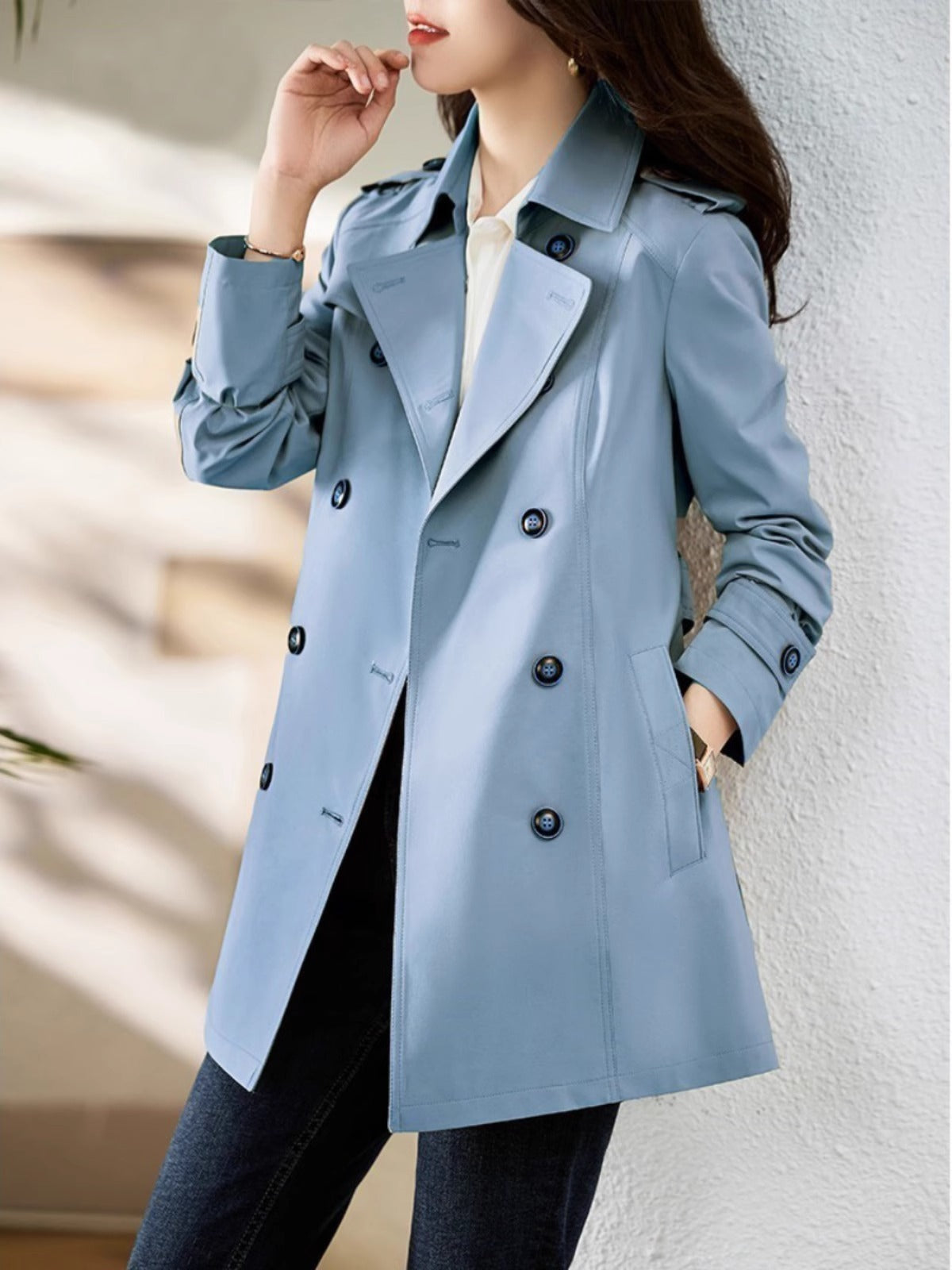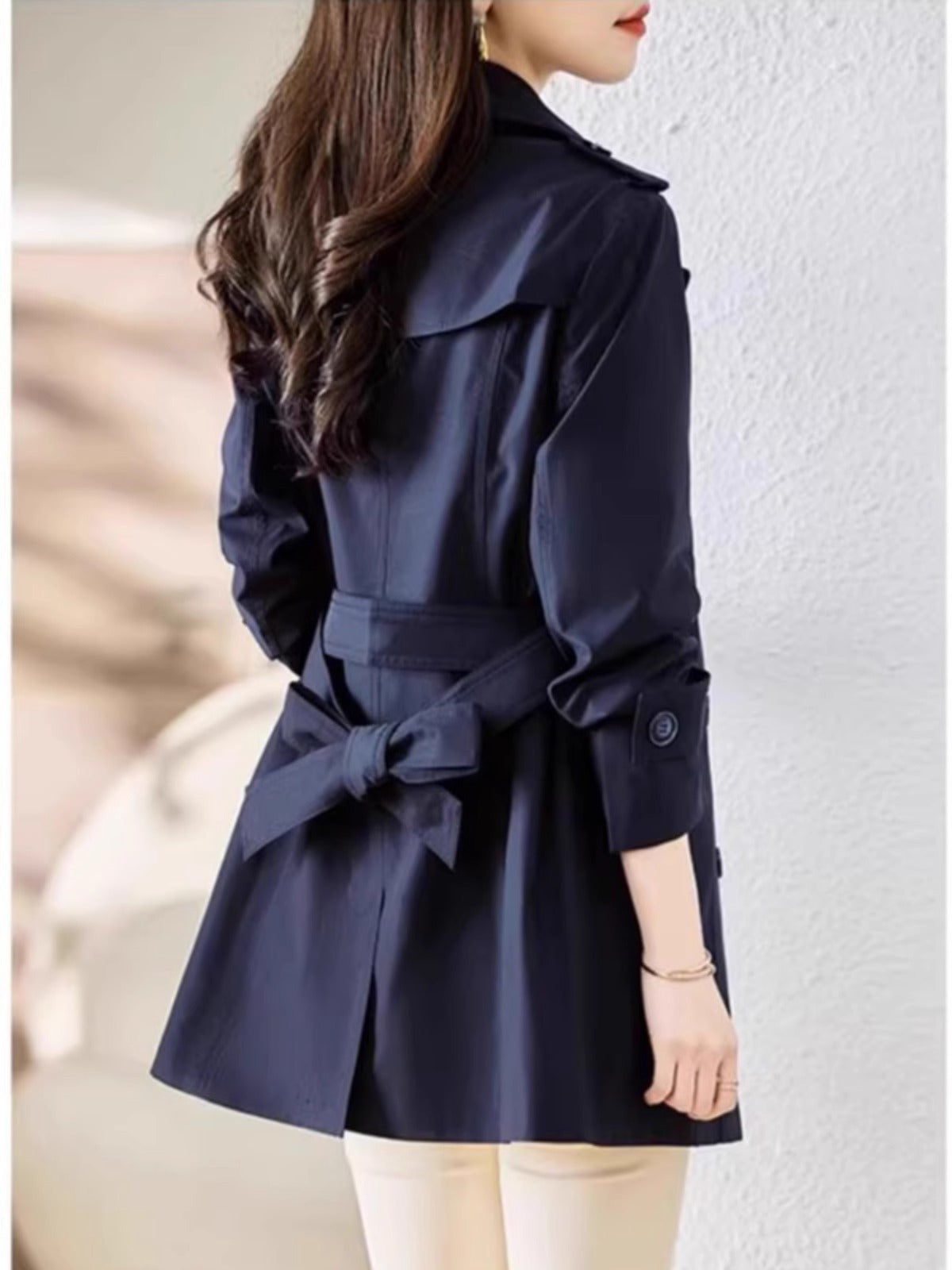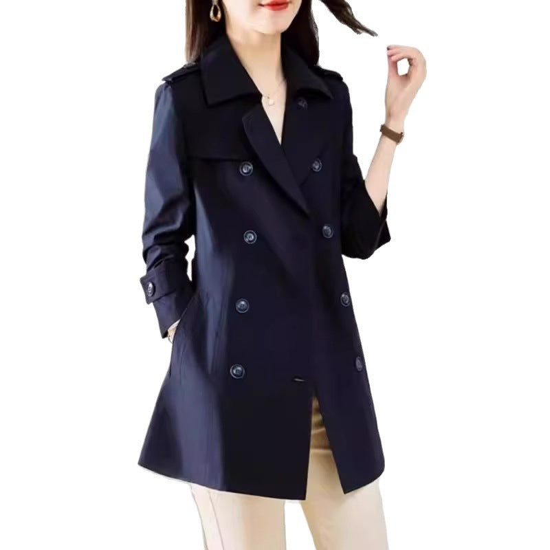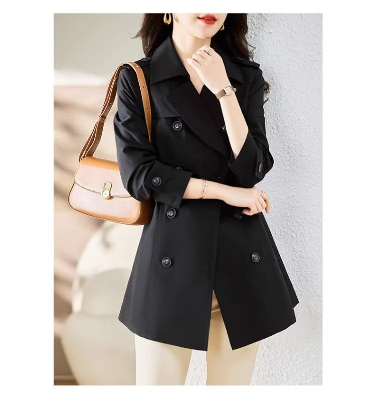 Women's Mid-length Trench Coat Double Breasted Fitted Waist Overcoat